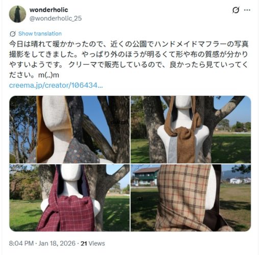 Ω(オメガ)マフラーを作っています。インスタやX(ツイッ…