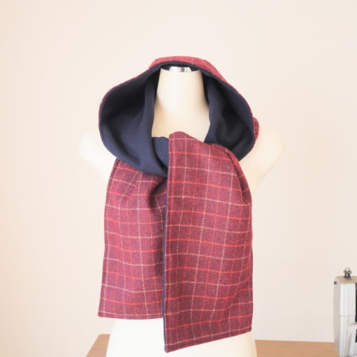 Ωマフラーはリバーシブルで2つのマフラーを縫い合わせて作…