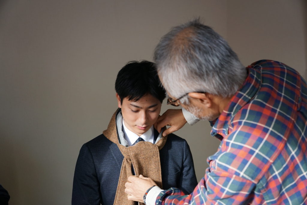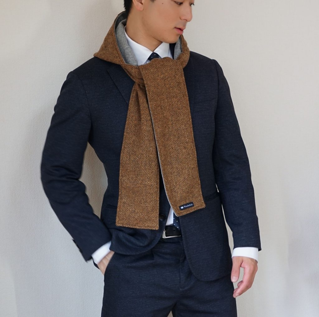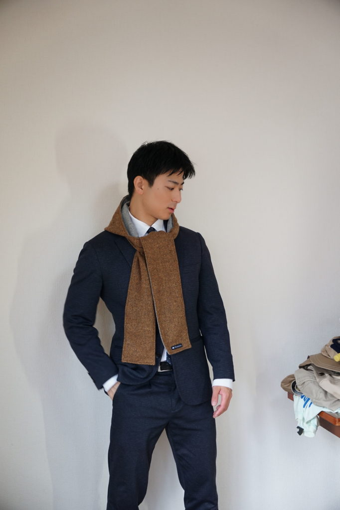 Ωマフラーの販売前にモデルを使って撮影会を行いました。着用イメージ(着丈とか)を知ってもらうのが目的です。男性モデルは友達のHさんの息子さんT君。好男子のヤサオトコながらガチムチ170cm。11月の末の暖かい日に行いました。尚、カメラマンはHさん(お母さん)が担当。カメラ撮影に習熟されていて私は撮影助手として勉強させてもらいました。おかげさまで良い写真が撮れました。ありがとうございました。